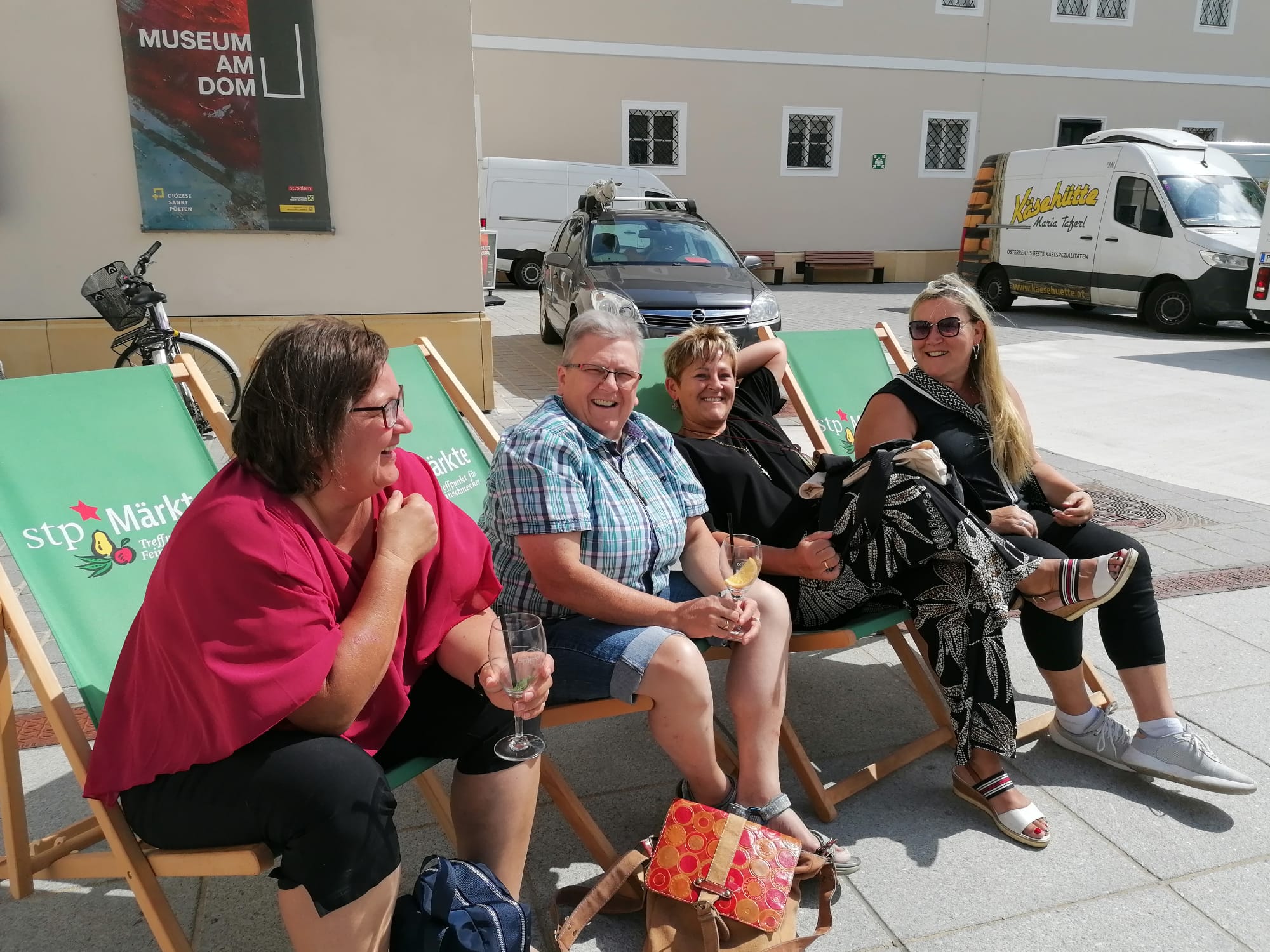 Dass am Domplatz Markttag war, erfreute uns besonders, da so einige Schmankerl und Durstlöscher angeboten wurden. Da war auch Zeit für so manches Tratschertl.