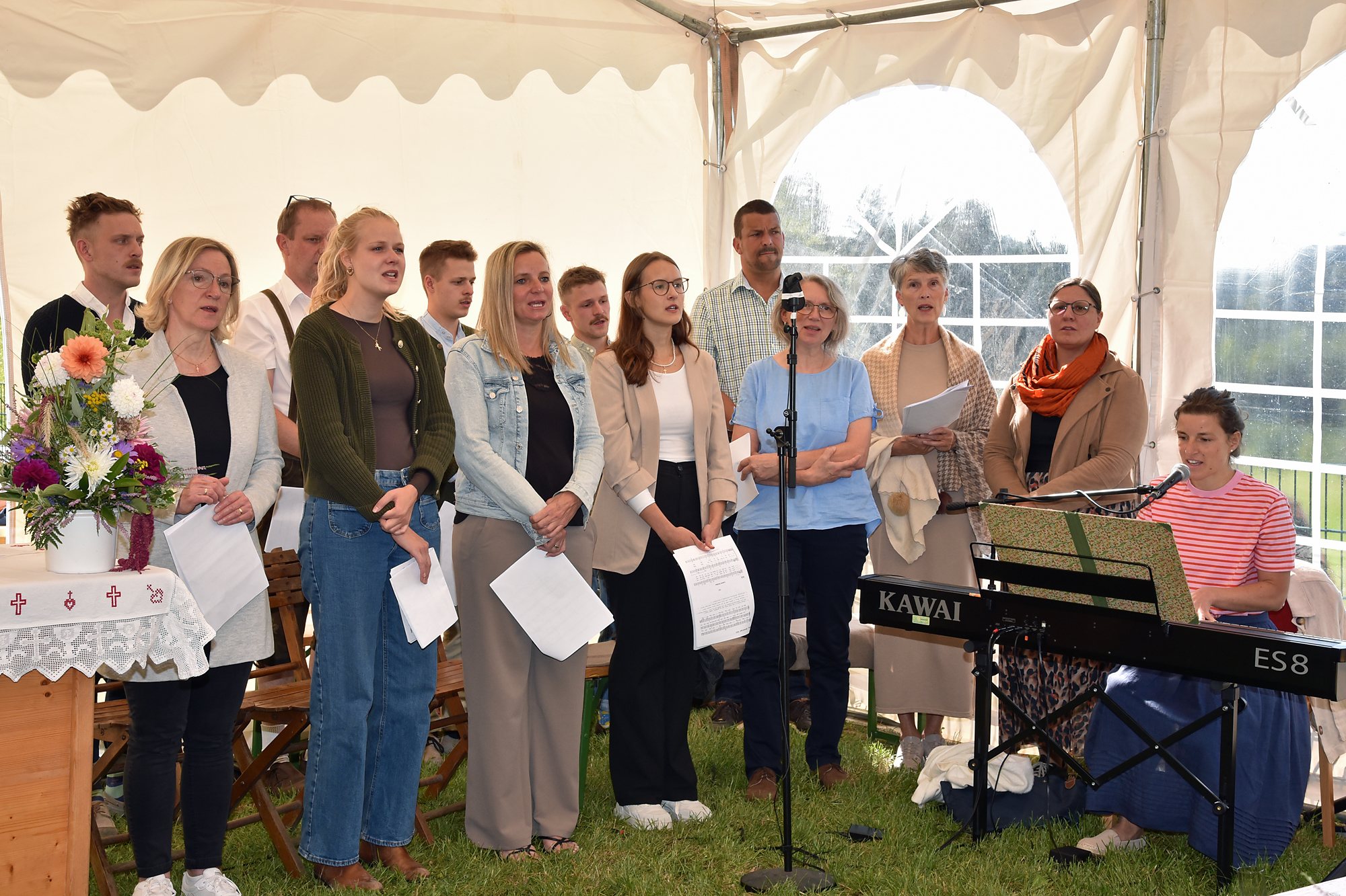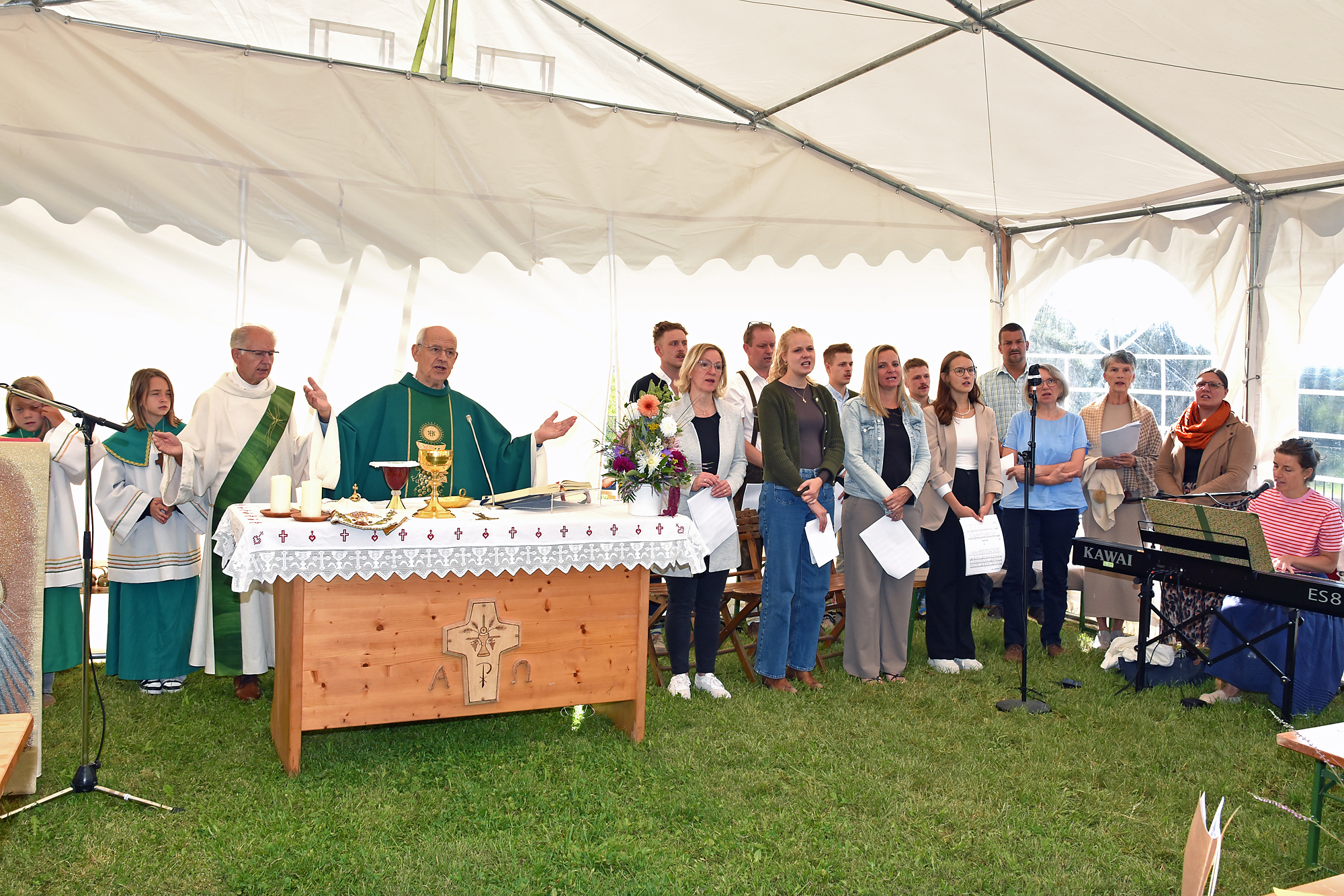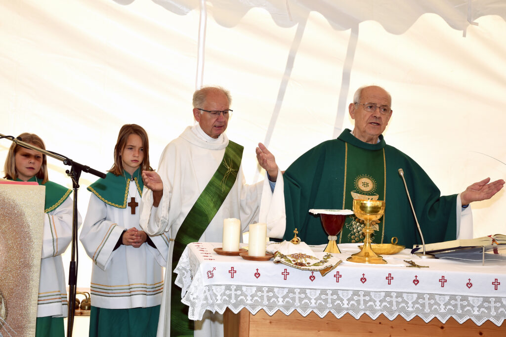 Eröffnet wurde dieses Fest mit dem Gottesdienst im Pfarrgarten, musikalisch gestaltet von einem kleinen Chor unter der Leitung von Magdalena Honeder.