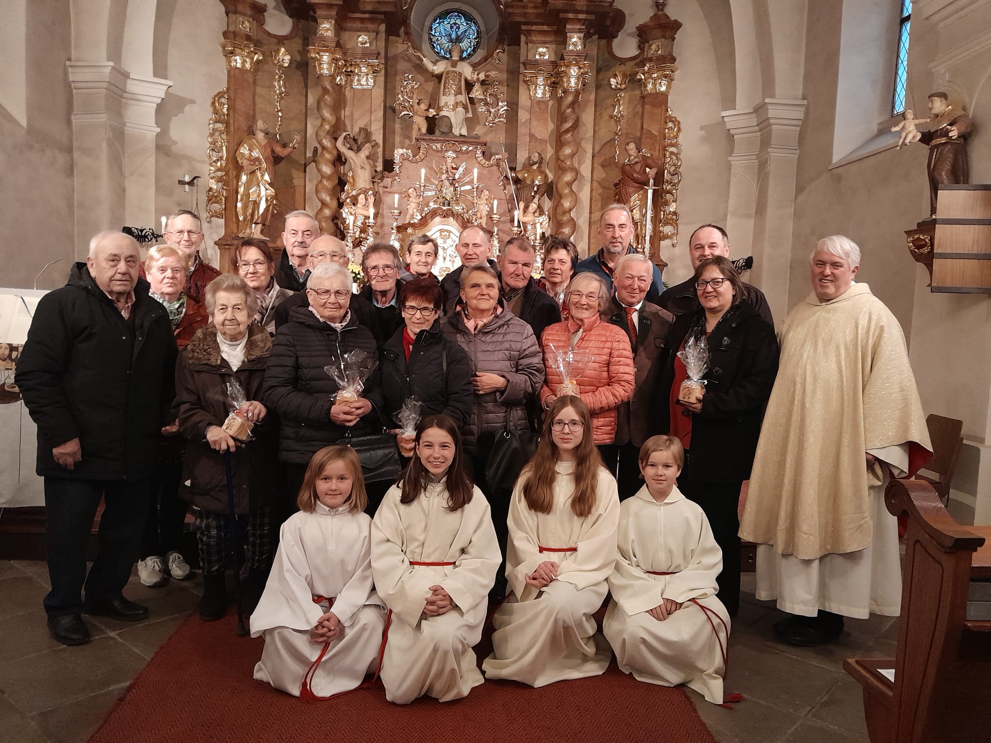 Am Samstag, den 15. November wurde die heilige Messe für die Jubelpaare des laufenden Jahres gefeiert. Die musikalische Gestaltung übernahm der Seniorenbund Langschlag. Als Andenken erhielten die Jubilare ein kleines Präsent aus Holz, gestaltet von Robert Edinger. Im Anschluss waren alle Besucher der hl. Messe zu einer Kaffeejause ins Kulturtreff eingeladen.