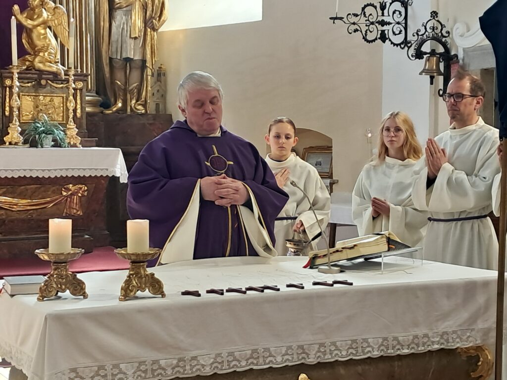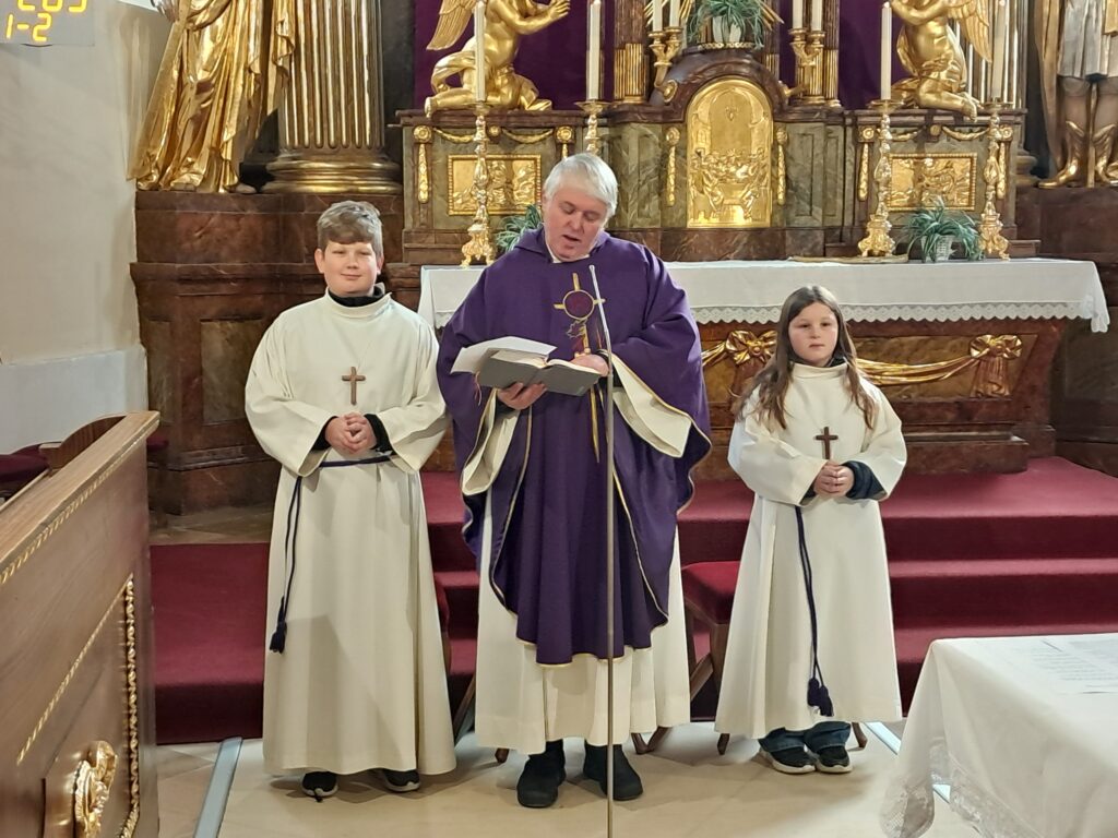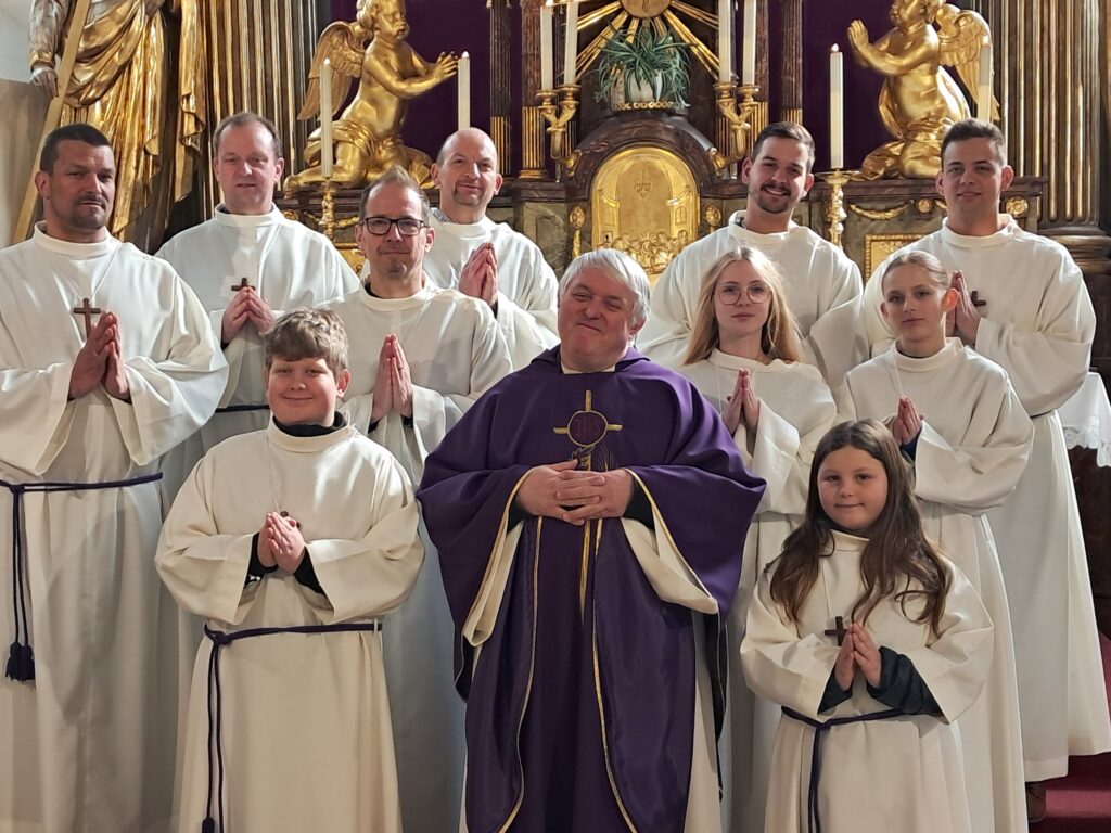 Mod. Dechant Mag. Andreas Bühringer überreichte jedem Einzelnen symbolisch ein Kreuz und bedankte sich herzlich für ihre Bereitschaft, die derzeit vier jungen Ministranten zu unterstützen. Zugleich ermutigte er sie, diesen eine gute Vorbildfunktion zu sein.